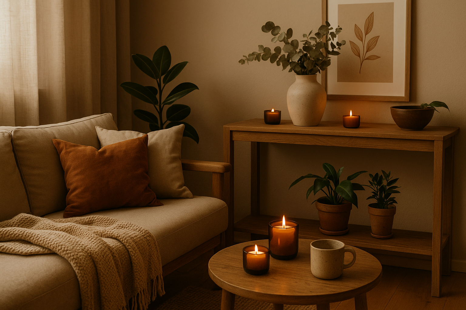 👉 Tip: Vždy mějte „dotykovou zónu“ – třeba oblíbený pléd, dřevěný tác nebo keramický hrnek, který příjemně hřeje v rukou.