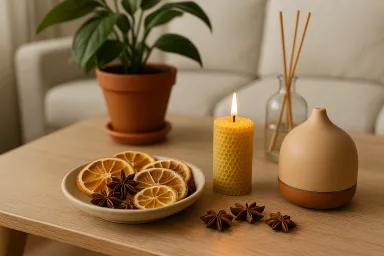 • Svíčky, difuzéry, sušené ovoce – jednoduché způsoby, jak provonět prostor bez chemie.
