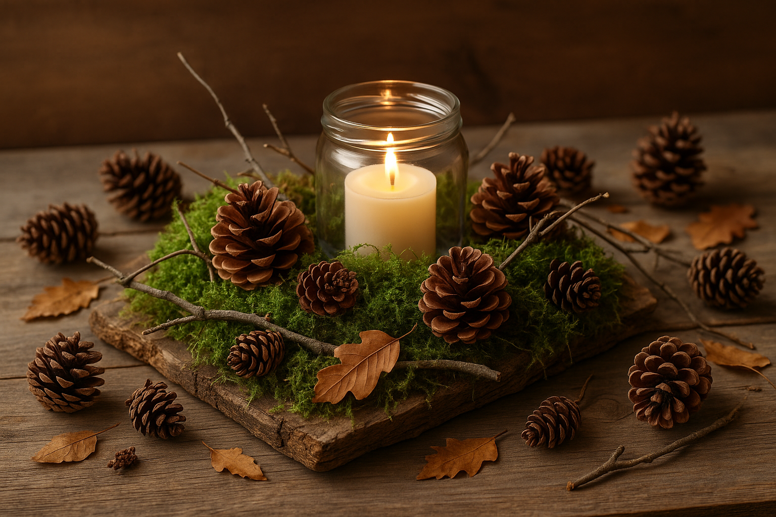 A když se venku setmí a vy rozsvítíte svíčku mezi větvičkami a mechem, ucítíte to pravé teplo domova – přirozené, tiché a opravdové. 🍂✨