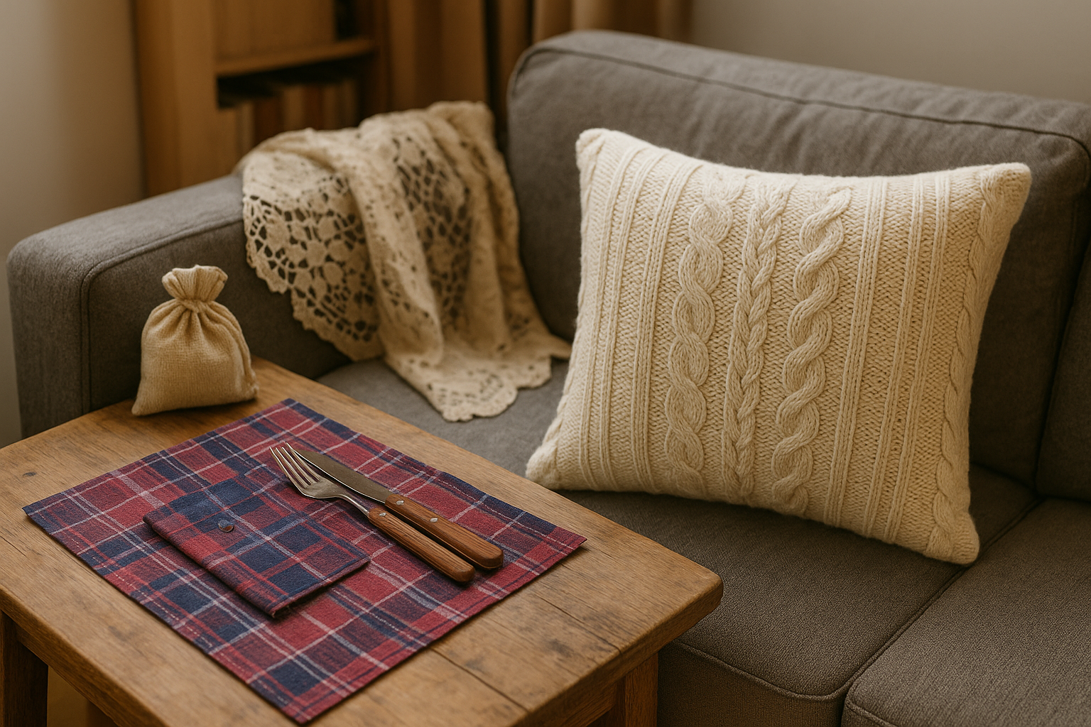 Zajímavého efektu dosáhnete, když zkombinujete různé textilie – například kostkovanou košili s krajkovou záclonou nebo hrubý svetr s jemným lněným ubrusem. Vznikne tak osobitý a útulný doplněk, který nebude mít nikdo jiný.